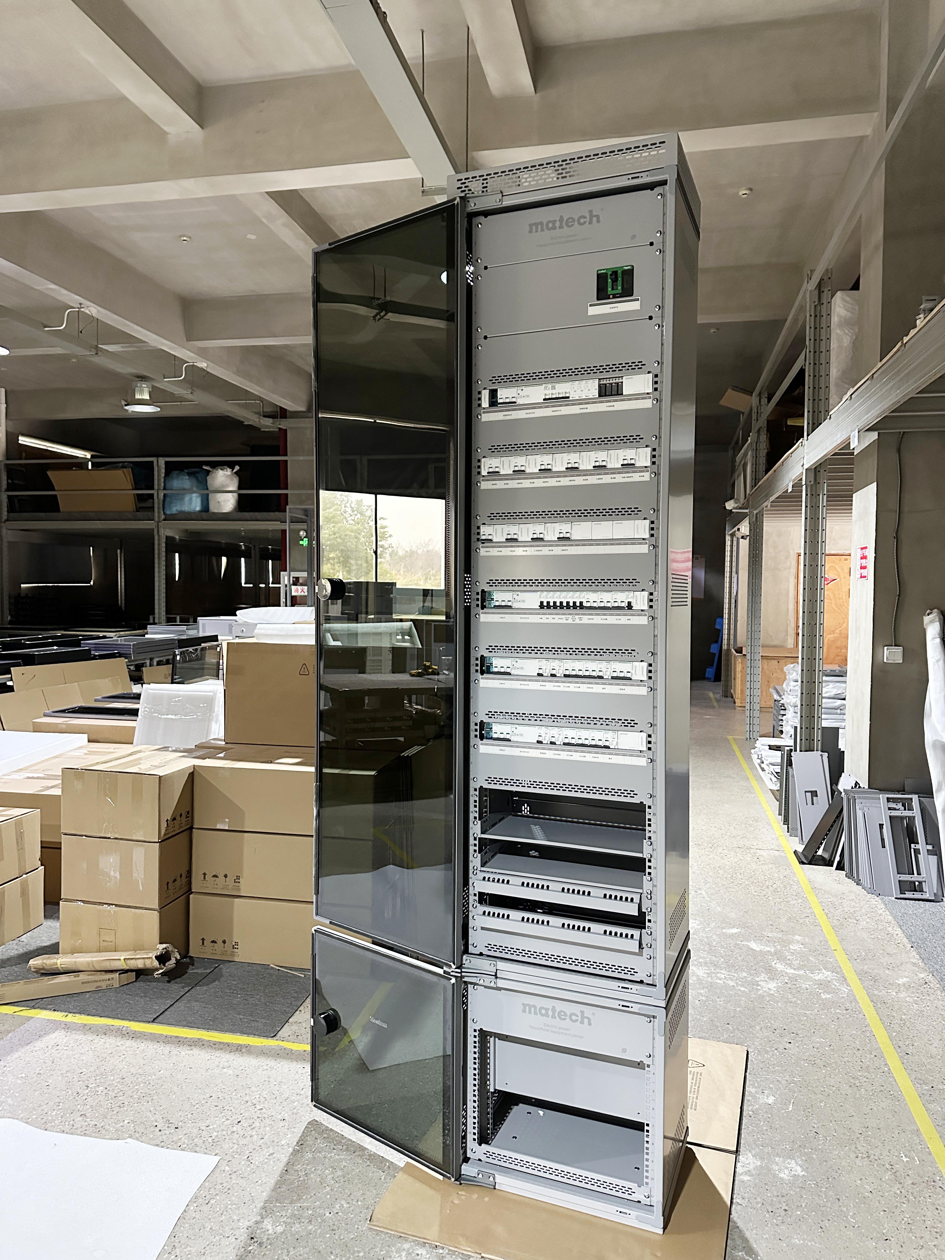 起初客戶找到我們,希望為家中定制一套配電箱,但在溝通中我們了解到客戶的設備清單,而標準2米的設備中心容量無法滿足實際需求。經過考量和設備參數(shù)核對,我們?yōu)榭蛻袅可碓O計了一套 “2米+0.5米”的子母柜組合方案。